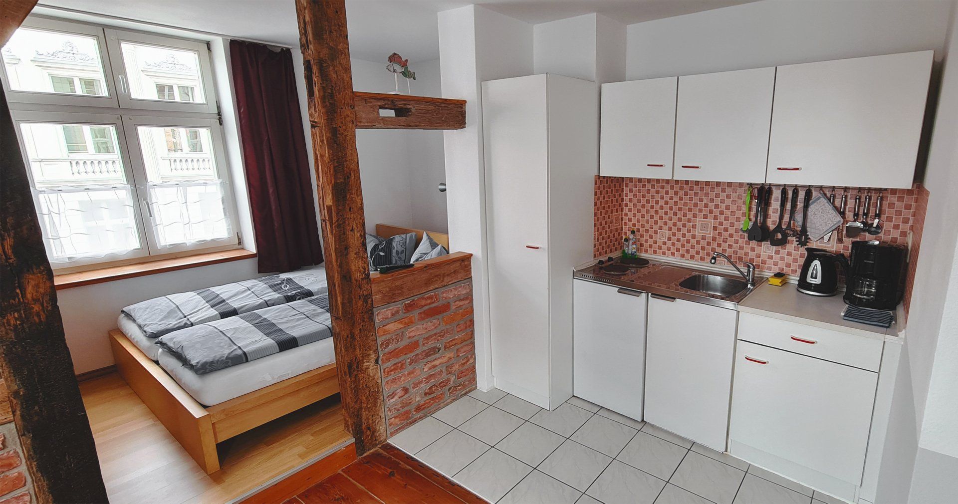 Das Appartement 3 befindet sich in der 1. Etage und umfasst 27m². Sie ist für 2 Personen nutzbar. Das Appartement liegt weniger als 200 Meter vom Alten Markt in Stralsund entfernt. Die Ferienwohnung ist geschmackvoll und gemütlich eingerichtet.